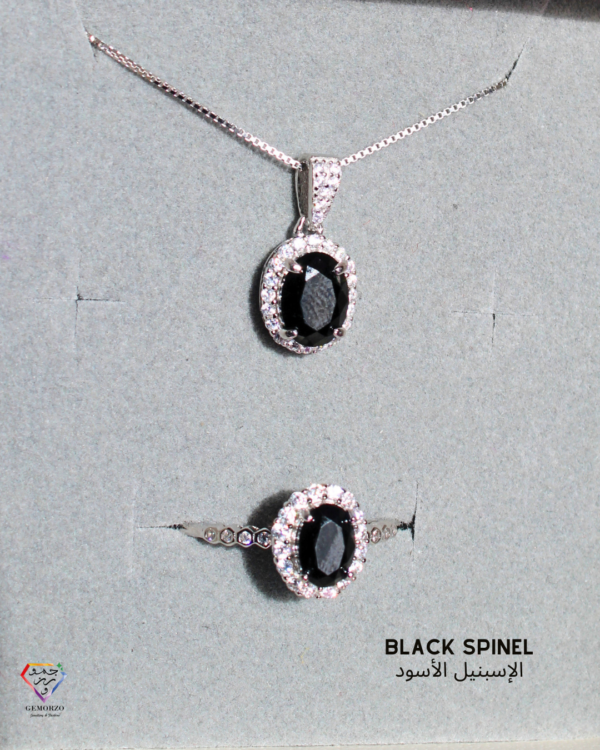 Black Spinel Faceted Natural Stone Pendant and Ring Set – Silver 925