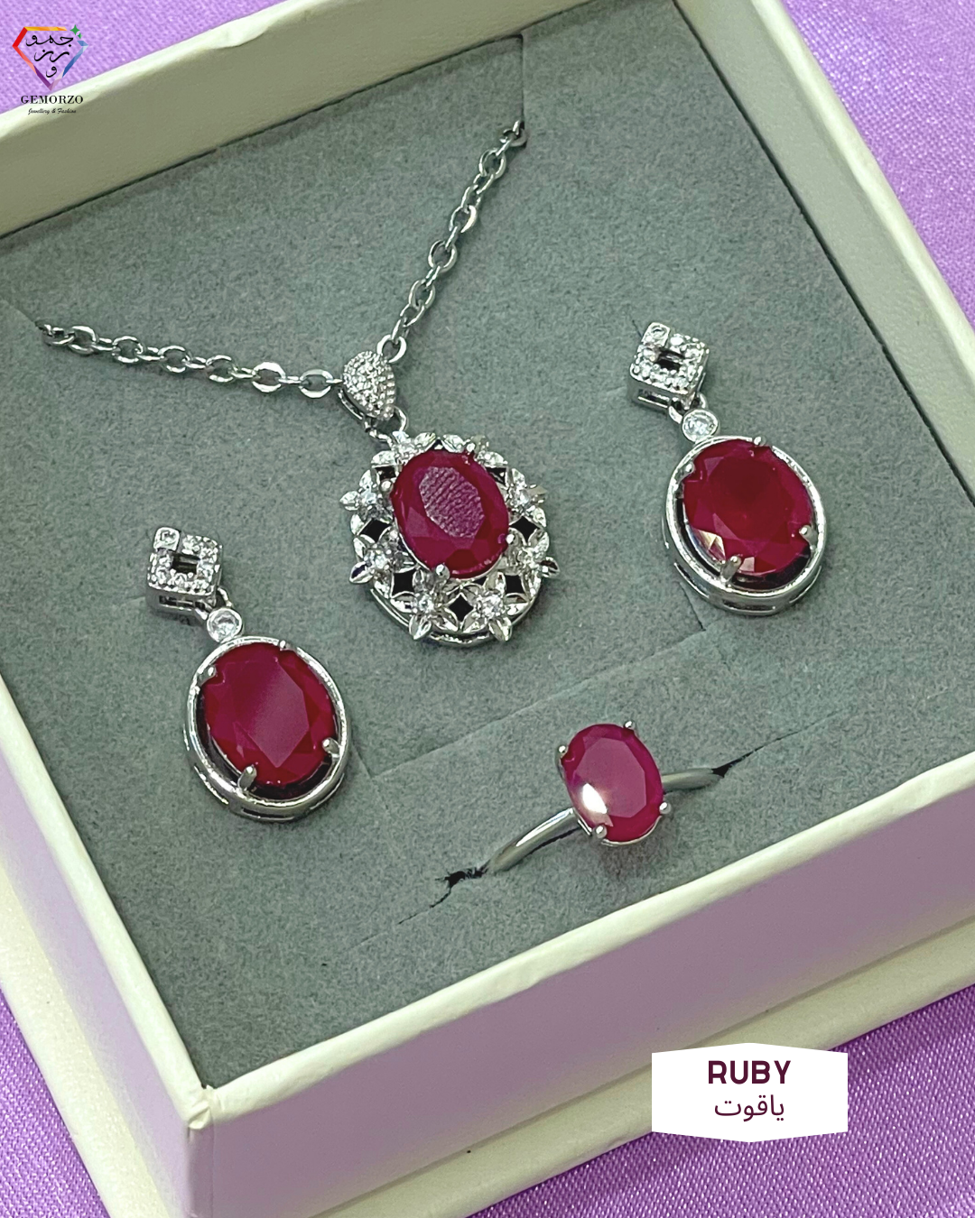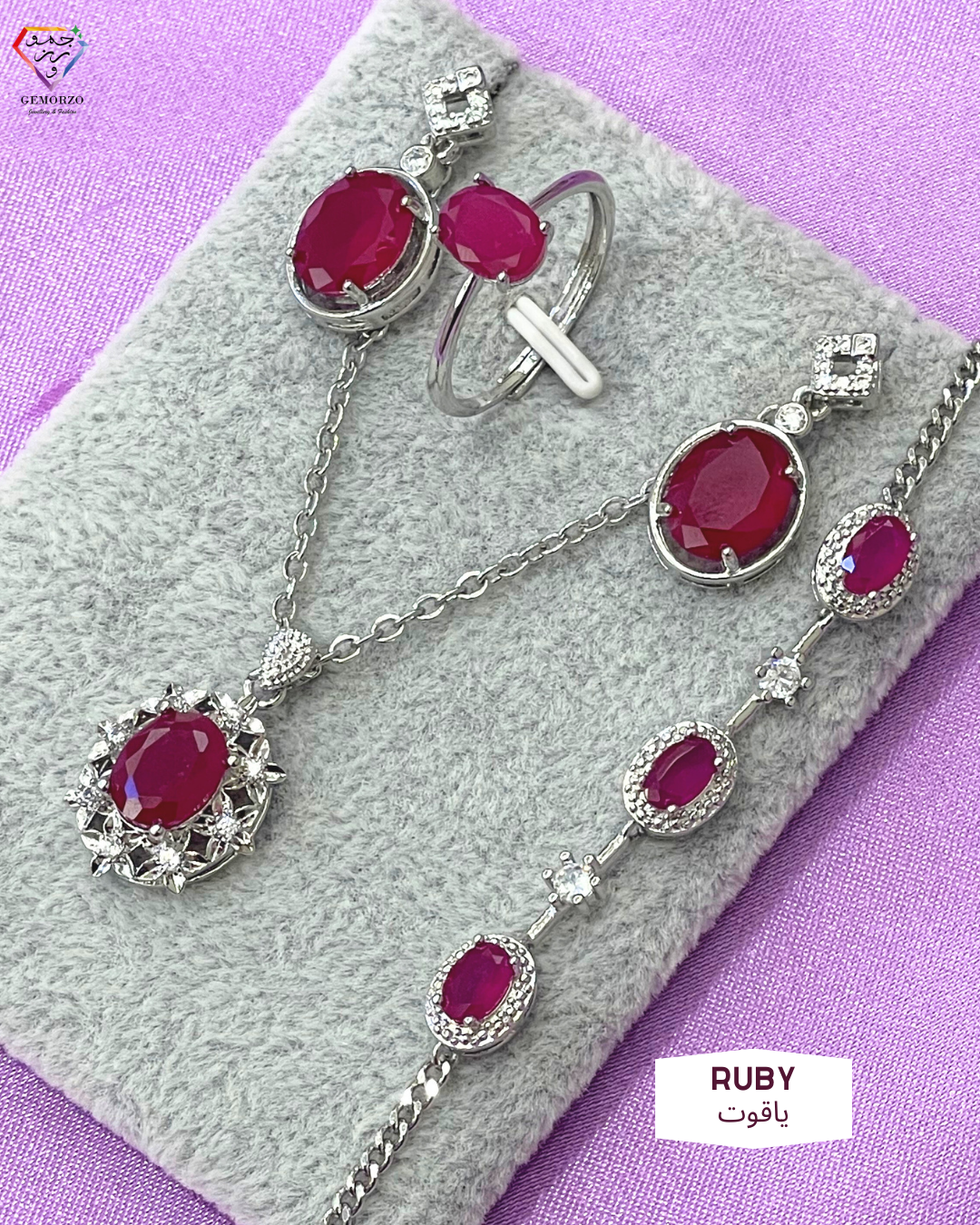 Full set includes: Earrings with S925 stoppers + Necklace with Chain + Ring + Bracelet
