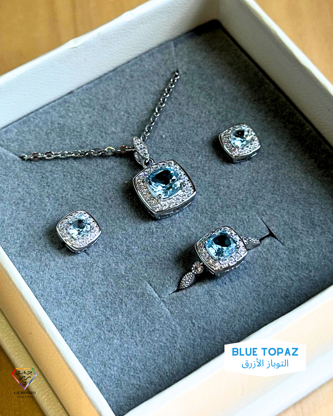 Be the first to review “Natural Stone Elegant Blue Topaz and Zircon Set (Earrings, Necklace With Chain, Ring)”