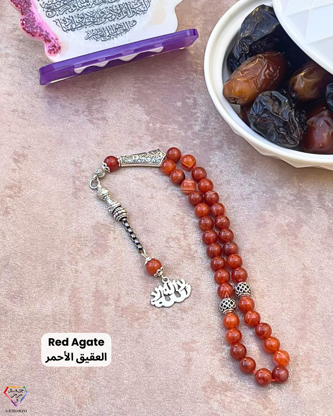 This handmade Misbah is made with Natural Stone – Red Agate – العقيق الأحمر